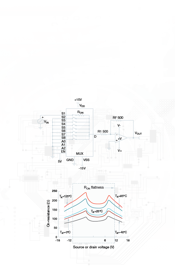 4.     Effective op amp gain including MUX RON
