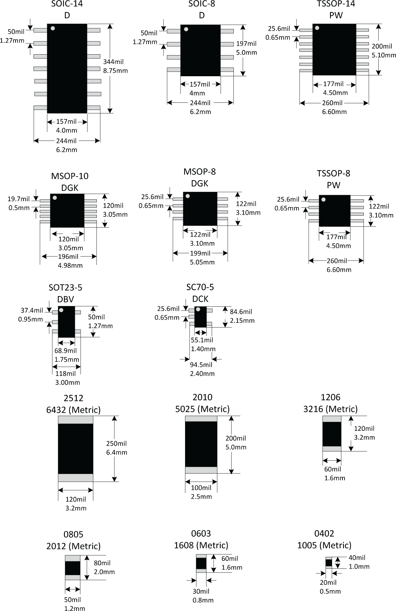 Common package type and dimensions