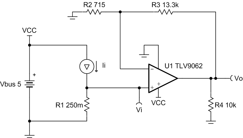 - 如果嘗試使用可擺動(dòng)至 GND 的輸出擺幅檢測(cè)零電流,可在此設(shè)計(jì)中使用負(fù)電荷泵(如 LM7705)作為負(fù)電源,以保持接近 0V 的輸出信號(hào)的線性。有關(guān)更多信息,請(qǐng)參閱具有輸出擺幅至 GND 電路的單電源低側(cè)單向電流檢測(cè)解決方案 模擬工程師電路。
