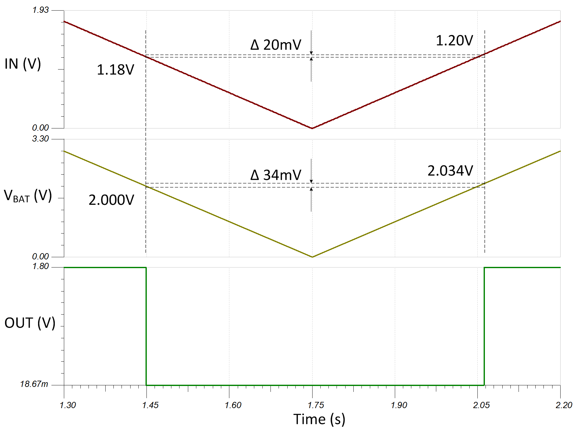 - 確認(rèn) VLOW 的值(即欠壓警報(bào)信號(hào)置位時(shí)的電壓電平)為 2.0V。