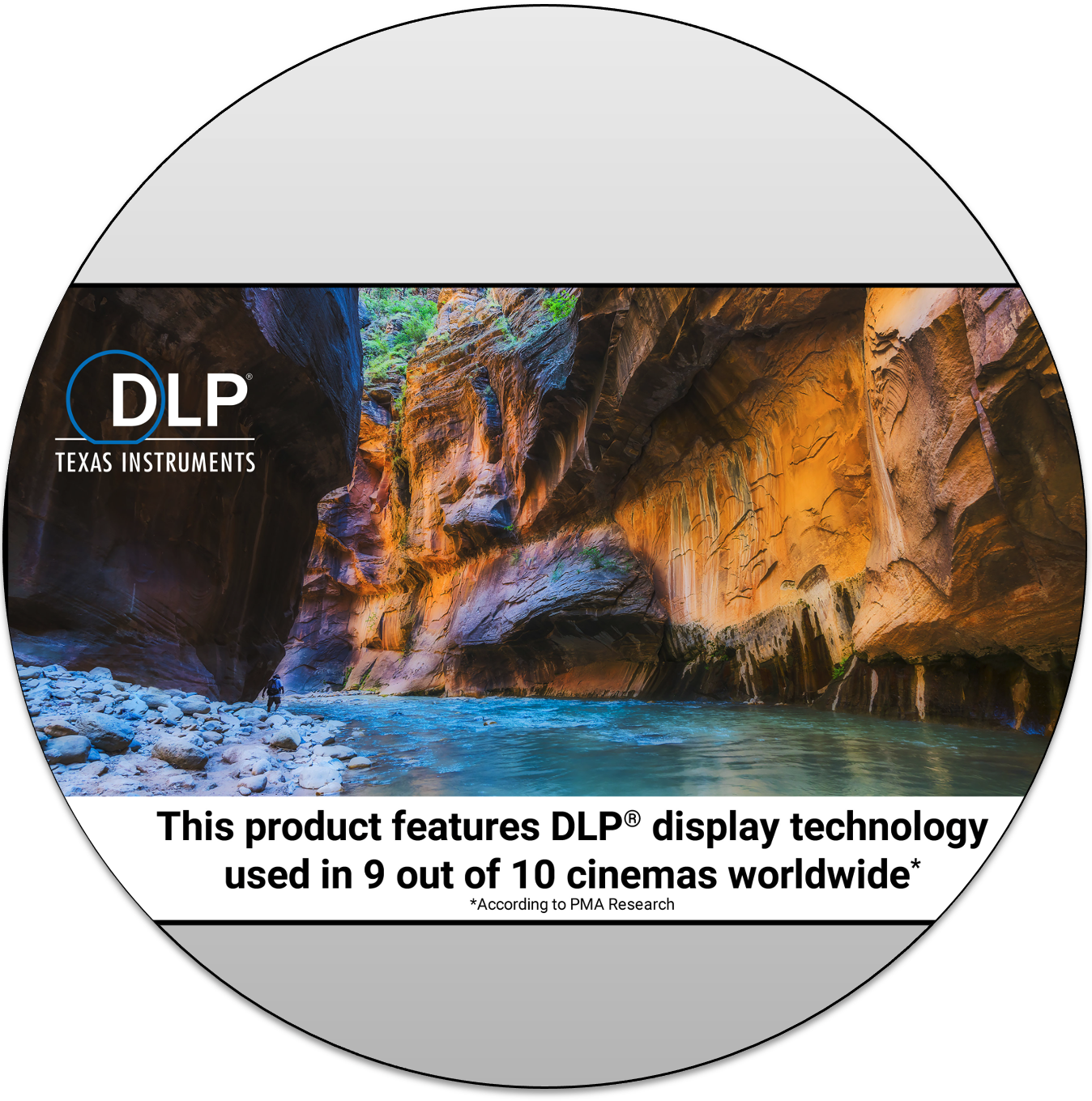 根據(jù)全球 90% 的電影院中使用的相同顯示技術(shù)(基于 PMA 研究),DLP 芯片組可以實(shí)現(xiàn)能提供飽和色彩和高對比度的顯示器。顯示系統(tǒng)的性能因光學(xué)引擎而異。 |