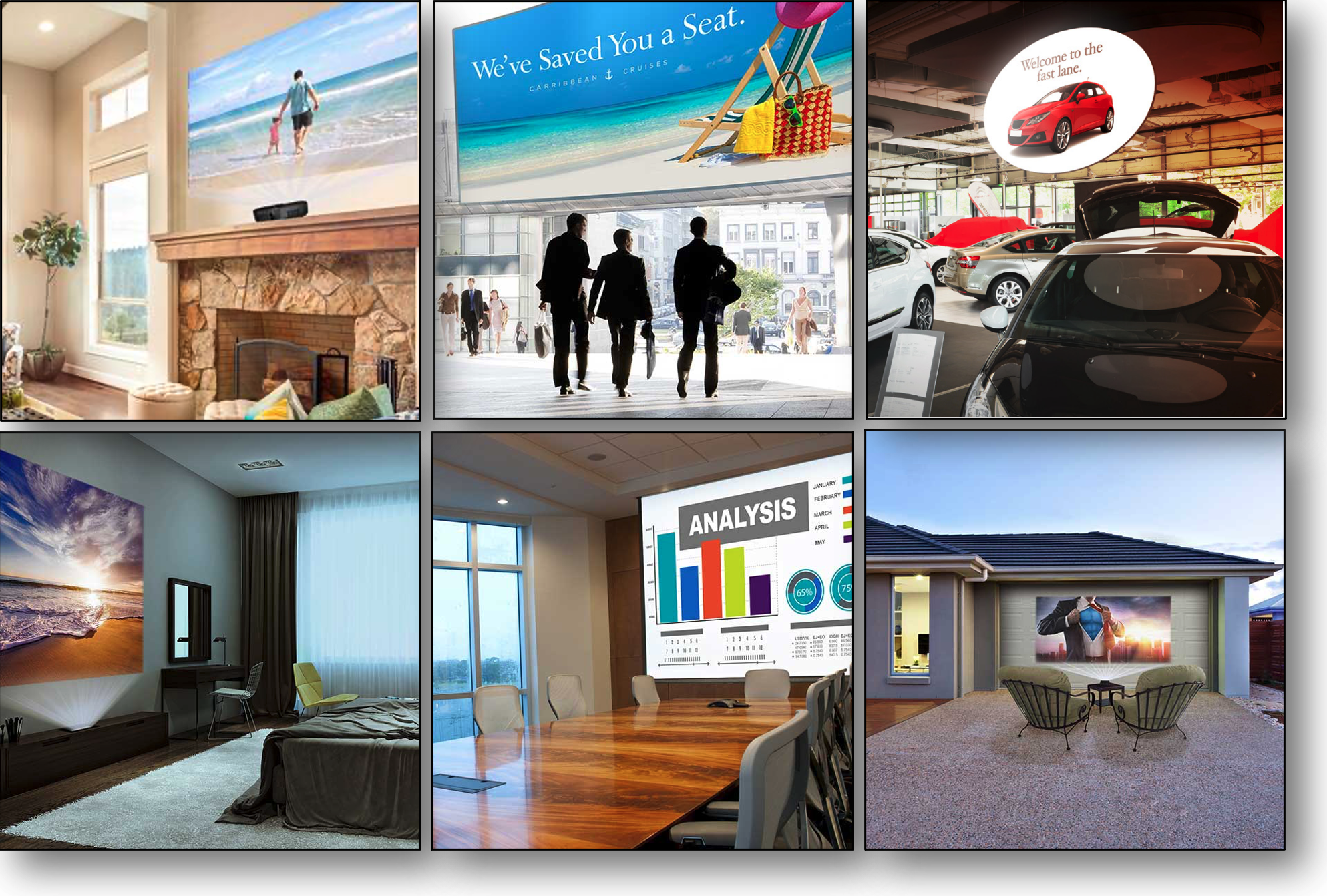 鑒于其投影特性和高對比度,可以實(shí)現(xiàn)幾乎任何外形尺寸的顯示器。黑色像素不會顯示在顯示表面上(在這些區(qū)域有效地提供透明背景)。 |