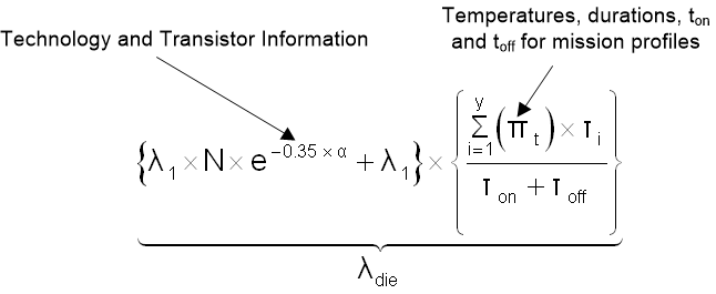 方程式 2 根據(jù) IEC TR 62380 將裸片時基故障表示為: