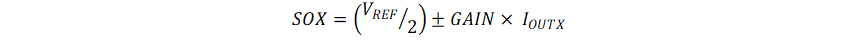 圖 3-1 電流檢測放大器架構(gòu)DRV8376 上的 SOx 引腳輸出的模擬電壓與低側(cè) FET 中流動的電流和增益設(shè)置 (GCSA) 的乘積成比例。增益設(shè)置可在四個不同級別之間調(diào)節(jié),這些級別可通過 GAIN 引腳(在硬件器件型號中)或 GAIN 位(在 SPI 器件型號中)設(shè)置。電流檢測是通過 DRV8376 器件在每個低側(cè) FET 上的傳感 FET 實現(xiàn)的。該電流信息饋送到內(nèi)部 I/V 轉(zhuǎn)換器,該轉(zhuǎn)換器根據(jù) VREF 引腳上的電壓和增益設(shè)置在 SOx 引腳上生成 CSA 輸出電壓。CSA 輸出電壓可按以下公式計算: