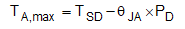 大多數(shù)現(xiàn)代 LDO 均具備熱關(guān)斷功能,可防止器件在高結(jié)溫下遭受嚴(yán)重?fù)p壞。在特定功耗水平下,帶有熱關(guān)斷功能的 LDO 存在最高工作環(huán)境溫度閾值,可觸發(fā)熱關(guān)斷,器件隨即停止工作。方程式 2 展示了用熱關(guān)斷溫度替代結(jié)溫的過程,以及對(duì)公式方程式 1 的推導(dǎo)整理: