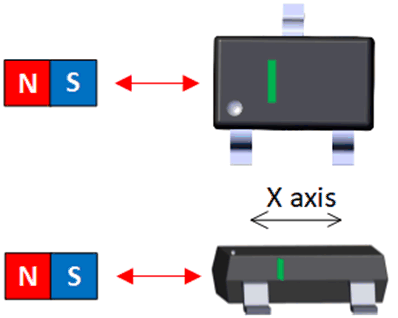 可以使用不同的靈敏度水平以滿(mǎn)足應(yīng)用的具體要求。當(dāng)施加的磁通量密度值超過(guò)運(yùn)行點(diǎn) (BOP) 閾值時(shí)(按絕對(duì)磁場(chǎng)值計(jì)算),開(kāi)漏輸出將產(chǎn)生低電平電壓。輸出會(huì)保持低電平,直到施加磁場(chǎng)降至低于釋放點(diǎn) (BRP) 閾值(也按絕對(duì)值計(jì)算)。