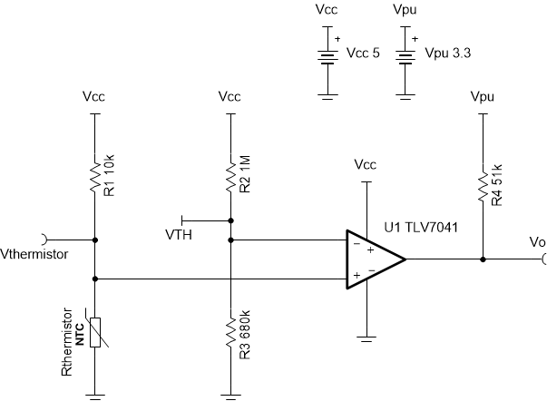 - TLV7041 具有漏極開(kāi)路輸出,因此需要上拉電阻器。