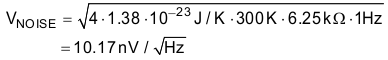 DAC8871 的典型輸出阻抗約為 6.25kΩ,假設在室溫下運行,其熱噪聲可通過以下公式進行計算: