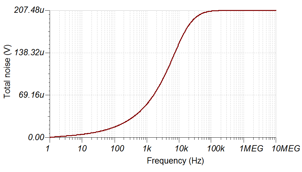 注意,計算結果與仿真結果匹配良好。如需了解放大器噪聲計算的詳細理論,請參閱噪聲 - 實驗室;如需了解數據轉換器噪聲,請參閱 ADC 噪聲測量、方法和參數。