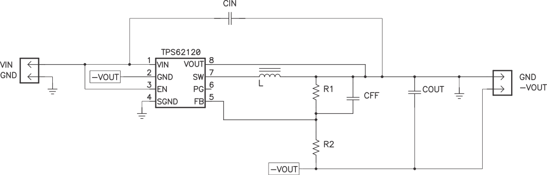 反相降壓/升壓拓?fù)渑c降壓拓?fù)浞浅O嗨?。?a xmlns:opentopic="http://www.idiominc.com/opentopic" class="xref" href="#SLVA4783734">圖 1-1 所示的降壓配置中,正連接 (VOUT) 連接到電感器,返回連接到集成電路 (IC) 接地。然而,在圖 1-2 所示的反相降壓/升壓配置中,IC 接地用作負(fù)輸出電壓(標(biāo)記為 -VOUT)。降壓配置中的正輸出用作接地 (GND)。這種反相拓?fù)湓试S輸出電壓反相并且始終低于接地電壓。