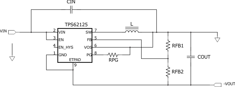 反相降壓/升壓拓?fù)渑c降壓拓?fù)浞浅O嗨啤T?a xmlns:opentopic="http://www.idiominc.com/opentopic" class="xref" href="#SLVA5143734">圖 1-1 所示的降壓配置中,正連接 (VOUT) 連接到電感器,返回連接到集成電路 (IC) 接地。然而,在圖 1-2 所示的反相降壓/升壓配置中,IC 接地用作負(fù)輸出電壓引腳(標(biāo)記為 -VOUT)。降壓配置中的正輸出用作接地 (GND)。這種反相拓?fù)湓试S輸出電壓反相并且始終低于接地電壓。