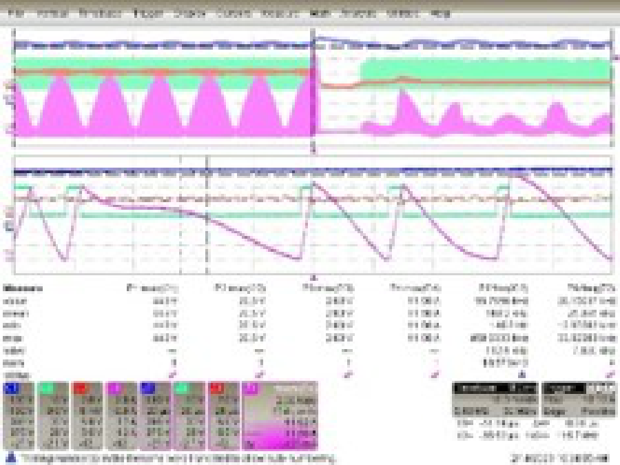 表 6-4 顯示了不同的比較波形,尤其是采用自適應 PFC 外部電路設計與原始升壓 PFC 設計相比的電感器電流值。從比較波形可以看出,采用自適應 PFC 外部電路的電路板的電感電流值明顯低于現有電路板。