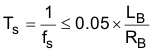 可以通過假設電流傳感器采樣周期 TS 遠小于 PFC 扼流圈 LB 和 RB 的時間常數來計算這些參數,其中 LB 是扼流電感,RB 是扼流圈直流電阻。選擇采樣頻率來滿足以下公式: